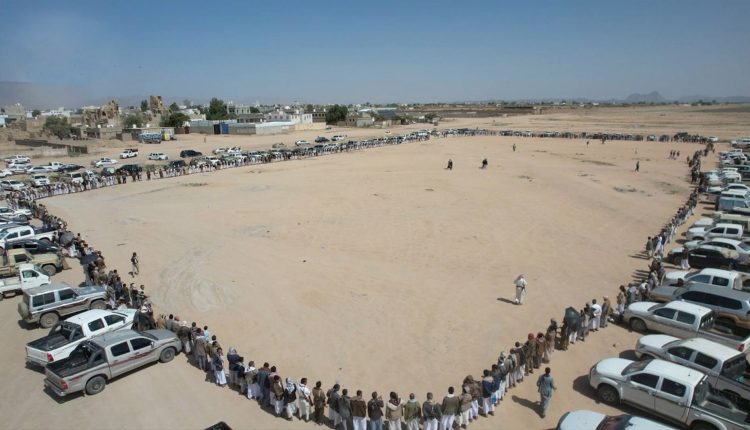 نظم أبناء وقبائل مديريات الصعيد بمحافظة صعدة اليوم الاثنين، وقفة قبلية مسلحة، تأكيدا على ثبات الموقف المساند مع غزة ومواجهة العدوان الأمريكي مهما كانت التحديات تحت شعار “ثبات وانتصار “.