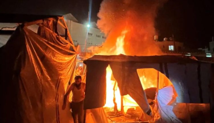 وبحسب مصادر محلية، اشتعلت النيران في محطة أبو جبة للبترول المقابلة لمدرسة يافا، التي تؤوي نازحين بحي الدرج، بعد قصف المدرسة.