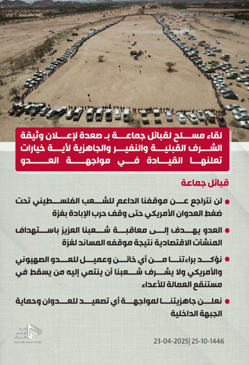 إنفوجرافيك| لقاء مسلح لقبائل جُماعة بـ صعدة لإعلان وثيقة الشرف القبلية والنفير والجاهزية لأية خيارات تعلنها القيادة في مواجهة العدو