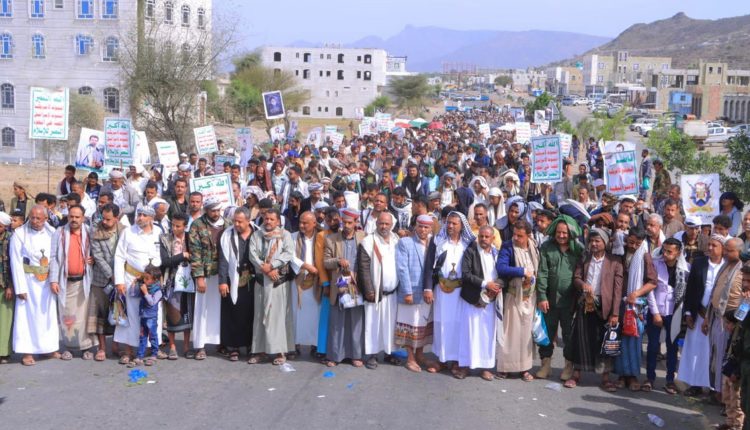 حيث شهدت ساحة الفتح الموعود في الهشمة مسيرة حاشدة بمشاركة القائم بأعمال محافظ تعز أحمد المساوى، ووكيل المحافظة منصور صدام، وقيادات عسكرية وأمنية، وشخصيات اجتماعية، أكد المشاركون فيها الاستمرار في الموقف المشرف المساند للشعب الفلسطيني المظلوم، والتصدي للعدوان الأمريكي على بلدنا.