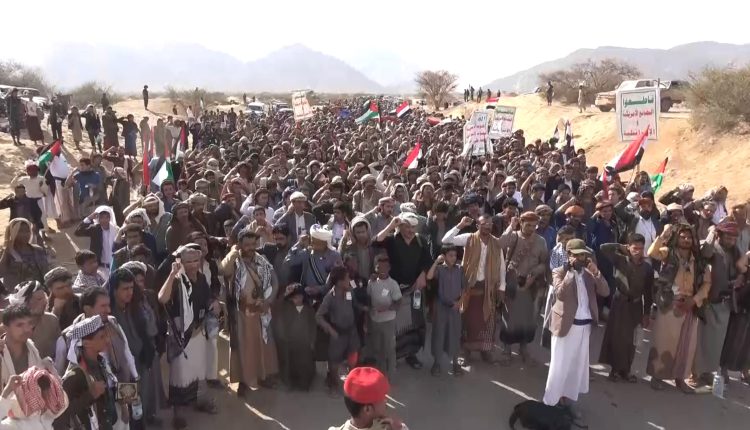 ونظم أبناء مديرية مجزر مسيرة حاشدة، أعلنوا خلالها التأييد المطلق للخيارات التي تتخذها قيادة الثورة لمواجهة العدو الأمريكي ونصرة الشعب الفلسطيني، مباركين العمليات النوعية للقوات المسلحة اليمنية في عمق الكيان الصهيوني.