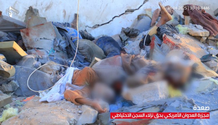 صور| مجزرة العدوان الأمريكي بحق نزلاء السجن الاحتياطي بمدينة #صعدة والتي راح ضحيتها العشرات من الضحايا الأفارقة 30-10-1446هـ | 28-04-2025م