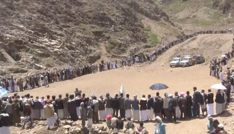 وشهدت الوقفة حضوراً واسعاً بمشاركة عضوي مجلس الشورى أحمد مقبل ومنصور المنتصر، ومسؤول التعبئة العامة بالمحافظة محمد النهاري، ومدير المديرية حيدر الجبوب، إلى جانب عدد من القيادات المحلية والاجتماعية.