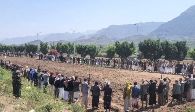 وقفة قبلية مسلحة في ريف إب تأكيدًا على دعم غزة وتدشين وثيقة الشرف القبلية