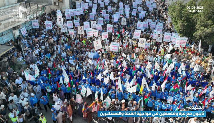 شهدت محافظة الحديدة، اليوم الجمعة، حشدا جماهيرياً غير مسبوق في 179 مسيرة بمركز المحافظة ومديرياتها، دعماً للشعب الفلسطيني وتنديداً بجرائم الصهاينة والمستكبرين، تحت شعار “مع غزة وفلسطين.. في مواجهة القتلة والمستكبرين”.