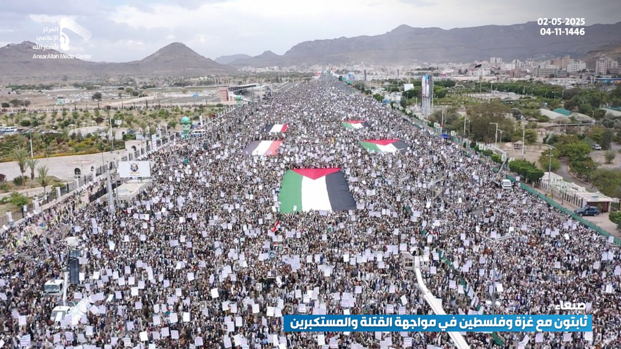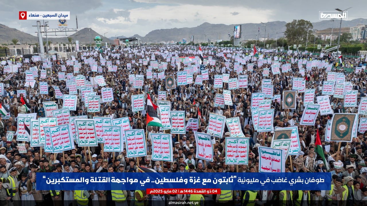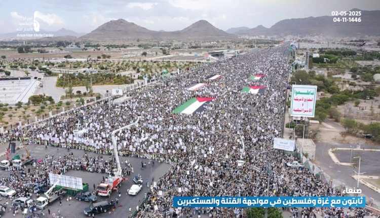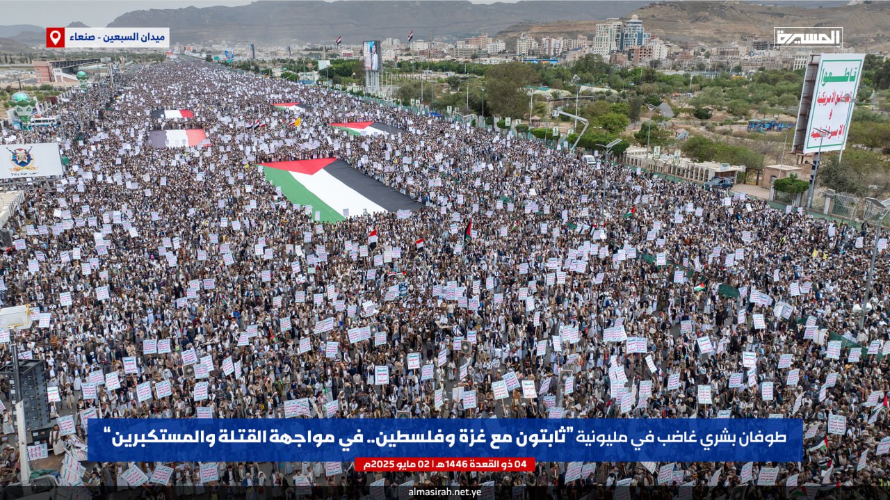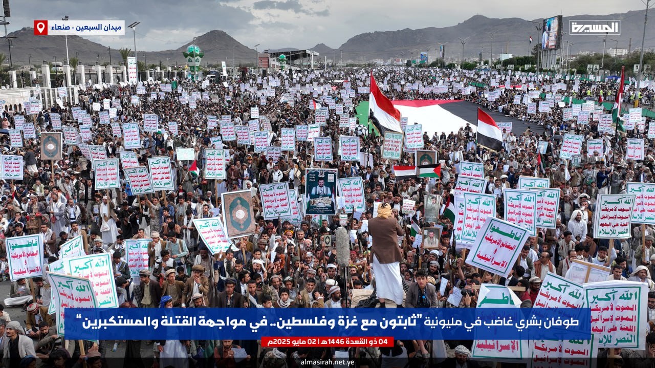 صور جوية| بالتزامن مع الصواريخ اليمنية نحو الكيان طوفان يمني يصفع العدو الأمريكي… حشود مليونية في مسيرة “ثابتون مع غزة وفلسطين.. في مواجهة القتلة والمستكبرين” بميدان السبعين في العاصمة صنعاء 04-11-1446هـ | 02-05-2025م