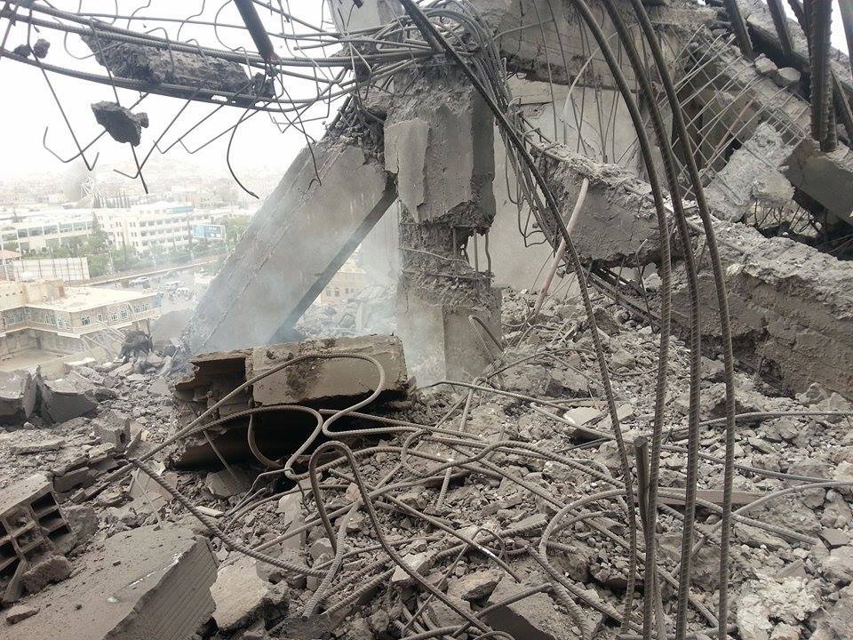 صعده . طيران العدوان السعودي الامريكي يستهدف مكتب قناة المسيرة في صعده ..