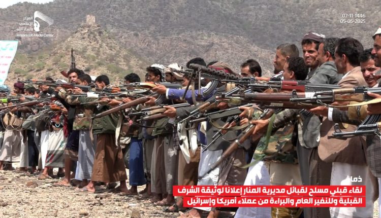 نظَّمت قبائل مديرية المنار بمحافظة ذمار، اليوم، وقفة قبلية مسلحة، إعلاناً للنَّكف القبلي والنفير العام والجهوزية لمواجهة تصعيد العدو الأمريكي والصهيوني.