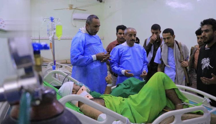 عطيفي يتفقد جرحى جريمة قصف مصنع إسمنت باجل