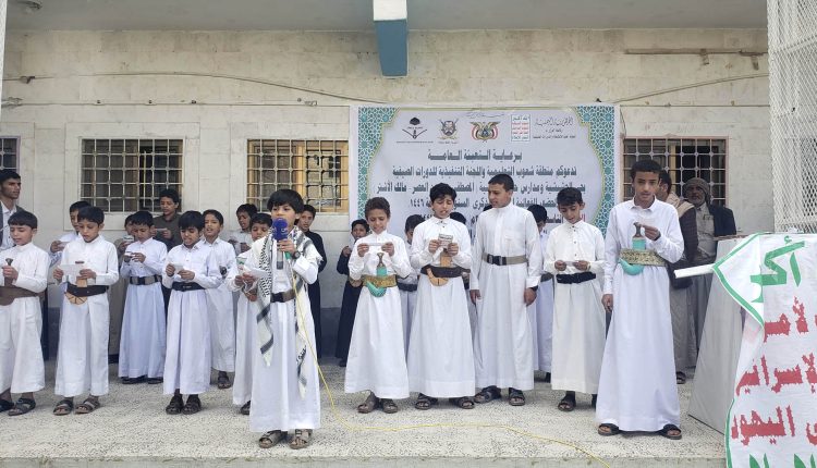 نظم طلاب المدارس الصيفية والنموذجية بحي الحشيشية بمديرية شعوب في أمانة العاصمة، فعالية خطابية بالذكرى السنوية للصرخة في وجه المستكبرين.