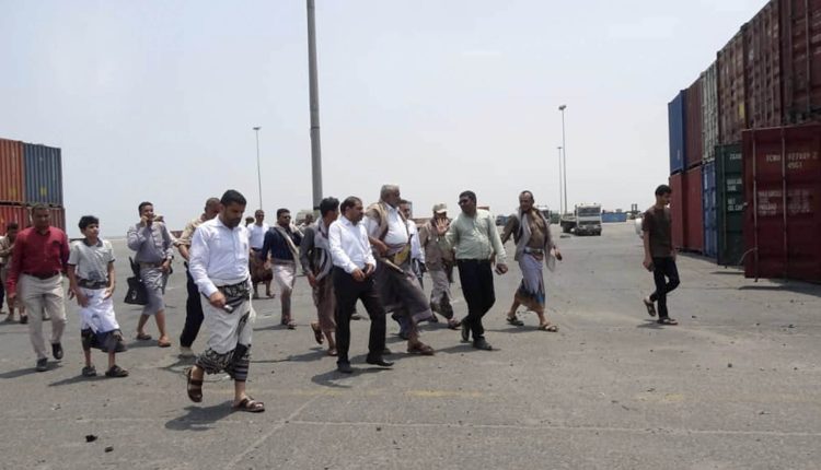 قحيم وعطيفي يتفقدان سير العمل وحركة تفريغ السفن في أرصفة ميناء الحديدة