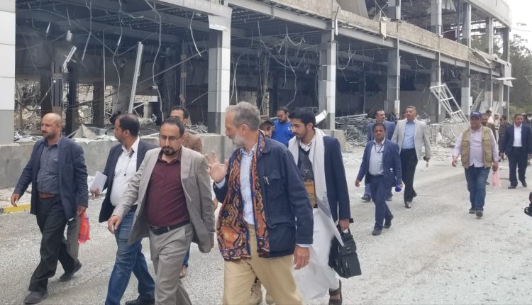 وكيل وزارة الخارجية والمنسق الأممي يطلعان على حجم الأضرار بمطار صنعاء الدولي