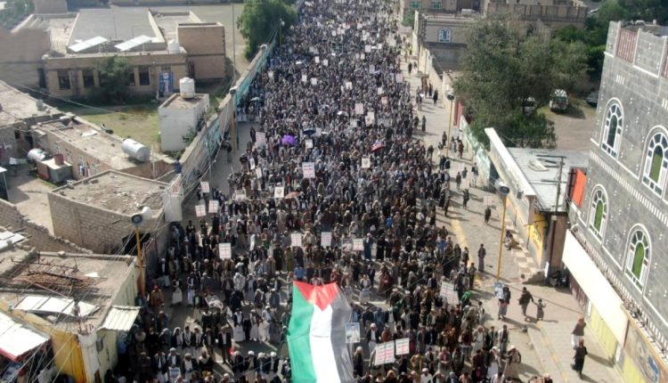شهدت محافظة ذمار اليوم الجمعة، 41 مسيرة جماهيرية حاشدة في مختلف المديريات، تأكيدًا على الاستمرار في مناصرة الشعب الفلسطيني في قطاع غزة، واحتفالًا بالنصر المؤزر الذي مَنَّ الله تعالى به على اليمن ضد أمريكا، والثقة بالله في النصر على العدو الصهيوني، تحت شعار “لنصرة غزة .. بقوة الله هزمنا أمريكا وسنهزم إسرائيل”.