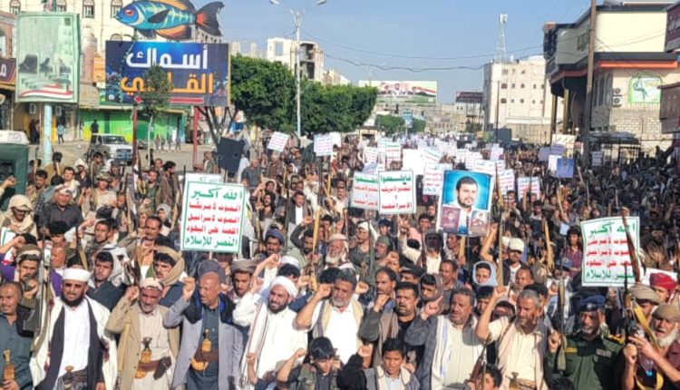 شهدت محافظة البيضاء اليوم الجمعة ، مسيرات جماهيرية حاشدة في مركز المحافظة والمديريات استمرارًا لنصرة غزة واحتفالًا بهزيمة الأمريكي تحت شعار “لنصرة غزة .. بقوة الله هزمنا أمريكا وسنهزم إسرائيل”.
