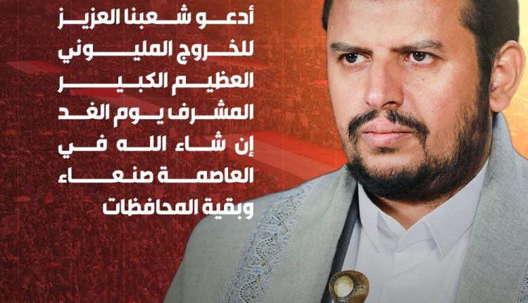 السيد القائد: أدعو شعبنا العزيز للخروج المليوني العظيم المشرف يوم الغد في العاصمة صنعاء وبقية المحافظات