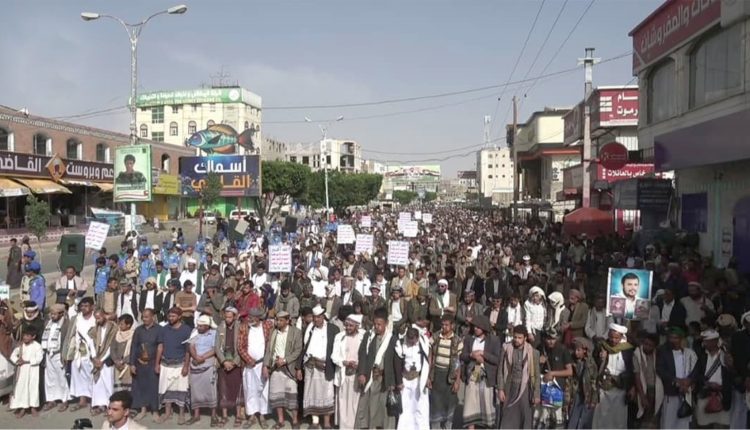 ورفعت الحشود في المسيرات التي تقدّمتها وكلاء المحافظة والقيادات المحلية والتنفيذية ومسؤولي التعبئة العامة والعلماء والشخصيات الاجتماعية، العلمين اليمني والفلسطيني ورددوا الشعارات المنددة باستمرار العدو الصهيوني في ارتكاب الجرائم المروعة في غزة.