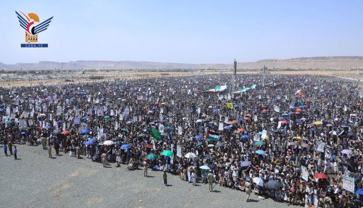 وفي المسيرات التي شهدتها ساحة المولد النبوي بمركز المحافظة، وساحة الشهيد القائد بخولان عامر، وساحات عرو وجمعة بني بحر، وذويب بحيدان، وشعارة والحجلة وبني صياح وبنلقم برازح، وربوع الحدود ومدينة جاوي وبني عباد وولد عمر في مجز، والجرشة بغمر، ومركز مديرية قطابر والجفرة وعضلة، والسهلين والحجر في آل سالم، والخميس وآل مقنع ونيد البارق في منبه، وشدا، ومركز مديرية كتاف وأملح والعقيق، ويسنم في باقم، وعزلتي الرحمانين وبقامة في غمر، وغافرة ووادي ليه وبني سعد ووالبه وبني ذهل وقيس والعوشة بمديرية الظاهر، ومذاب في الصفراء، أكد المشاركون أن الشعب اليمني ماضٍ في تصعيد موقفه الإيماني لمواجهة جريمة الإبادة والتجويع في غزة.