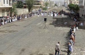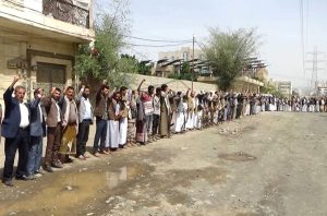 وطالبت الوقفات التي حضرها مديرو المديريات ومسؤولي التعبئة وشخصيات اجتماعية، الجهات المعنية بتنفيذ قانون الخيانة العظمى وتطبيق الأحكام القانونية ضد الخونة والعملاء.