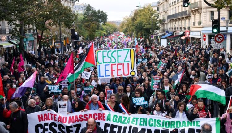 مظاهرة ضخمة في باريس تضامناً مع قطاع غزة