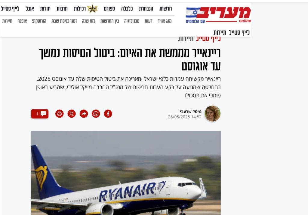 تقديرات الخسائر المالية التي تكبدتها “رايان إير” والتي بلغت نحو 3.8 مليون يورو منذ اندلاع العدوان الأخير، دفعت بالشركة إلى اتخاذ قرار يُفهم منه أنه قد يكون مقدّمة لخروج دائم من سماء كيان الاحتلال إذا لم تطرأ تغيّرات جذرية على الأرض. وما دام “الردع” الجوي فاشلًا، فالاحتمال الأكبر أن هذا الانسحاب سيتمدّد إلى نهاية العام، وربما إلى ما بعده.