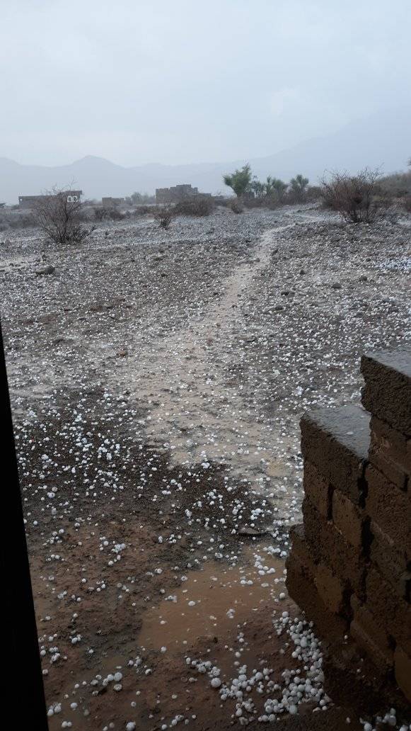شهدت مديرية العشة في محافظة عمران، ظاهرة جوية نادرة وخطيرة، تمثلت في هطول أمطار رعدية غزيرة ترافقها تساقط حبات برد ضخمة بلغ حجم بعضها مقدار راحة اليد، ما تسبب بأضرار بالغة في الممتلكات والمحاصيل الزراعية، وأثار موجة من القلق في أوساط المواطنين.
