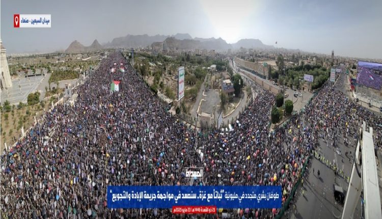 شهدت العاصمة اليمنية صنعاء وعدد من المحافظات الأخرى، اليوم، مليونيات حاشدة مسيرات ’’مستمرون في نصرة غزة والمقدسات مهما كانت التحديات’’ ، عبّر فيها الملايين من أبناء اليمن عن مواقفهم الثابتة والداعمة للشعب الفلسطيني في قطاع غزة، ورفضهم المستمر للطغيان الصهيوني والأمريكي، مؤكدين أن قضية فلسطين ستظل محورًا مركزيًا في الوجدان اليمني مهما اشتدت التحديات.
