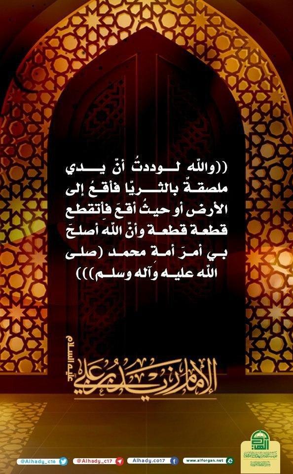 – ((ﻳﺼﻠﺐ ﺭﺟﻞ ﻣﻦ ﺃﻫﻞ ﺑﻴﺘﻲ ﺑﺎﻟﻜﻮﻓﺔ ﻋﺮﻳﺎﻥ، ﻻ ﻳﻨﻈﺮ ﺃﺣﺪ ﺇﻟﻰ ﻋﻮﺭﺗﻪ ﻣﺘﻌﻤﺪاً ﺇﻻ ﺃﻋﻤﺎﻩ الله ﻋﺰ ﻭﺟﻞ ﻳﻮﻡ اﻟﻘﻴﺎﻣﺔ)).