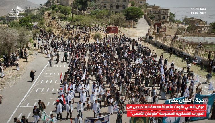 حجة.. أكثر من ألفي مقاتل يستعرضون جاهزيتهم في كحلان عفار نصرة لغزة