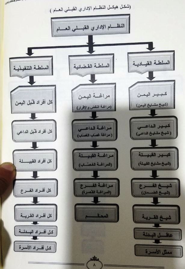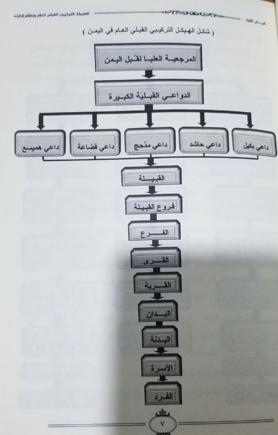 تعد القبيلة في اليمن هي المكون الرئيسي والأساسي لشكل الهيكل التركيبي القبلي العام, كما أن العرف’ هو وحدة البناء لهذا الكيان العريق والمحدد لنظامه الإداري , كما يعتبر العرف وقواعده التشريعية هو المرجع الوحيد لكل تركيب وتقسيم وتنظيم ونشاط, ومسار للمجتمع القبلي, بالإضافة إلى إدارة كل الشؤون القبلية الداخلية والخارجية.