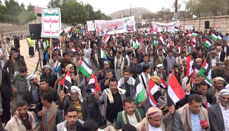 وأكد بيان المسيرات أن “العدو الصهيوني يمارس جرائم إبادة وتجويع وتعطيش بدعم أمريكي وتمويل أنظمة عربية خائنة”، داعيًا إلى استمرار الضربات اليمنية وعدم الرأفة بمن يشارك في دعم الاحتلال اقتصاديًا أو عسكريًا.