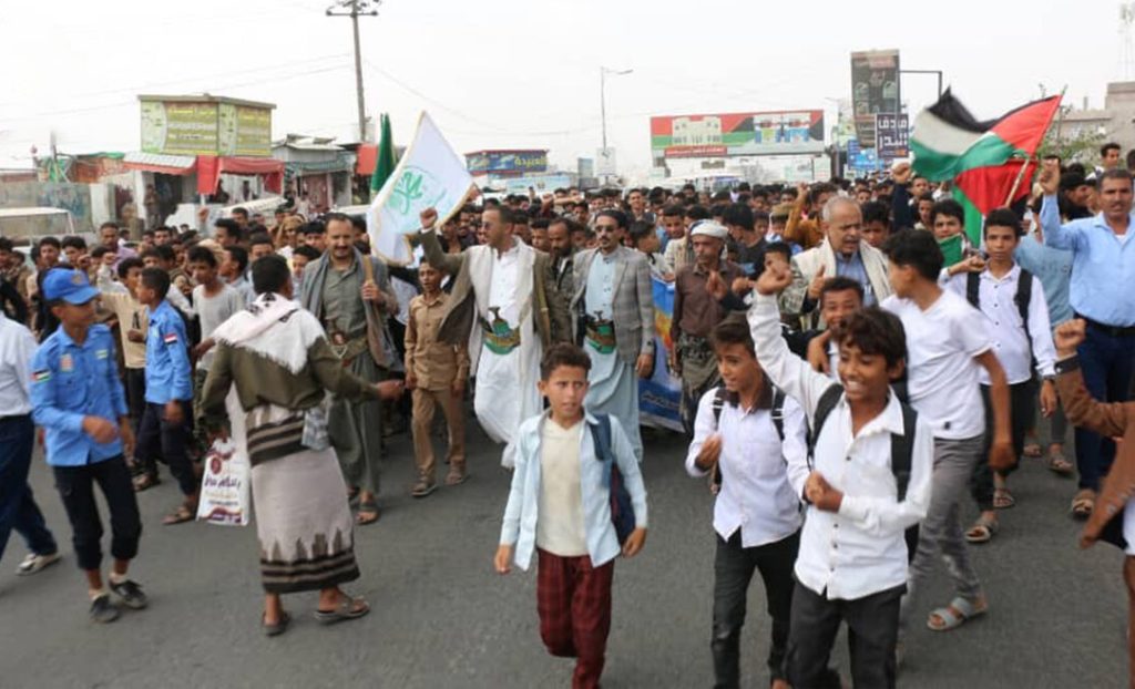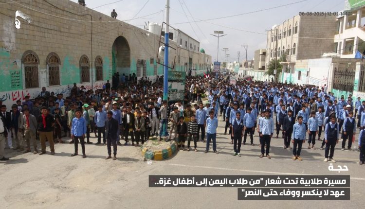 مسيرات طلابية حاشدة في حجة وتعز والحديدة وصعدة والجوف تنديدًا بجرائم الإبادة في غزة