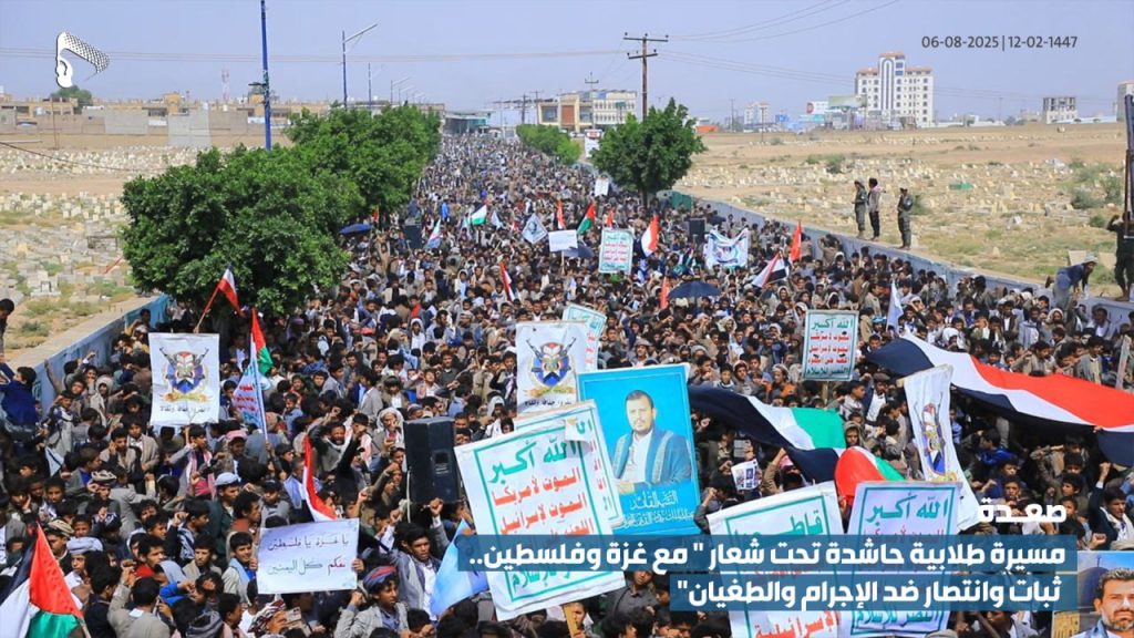 ورفع الطلاب العلمين اليمني والفلسطيني، مرددين هتافات البراءة من أعداء الله، والتنديد بالتواطؤ الأممي والتمويل الخليجي للجرائم الصهيونية، مؤكدين أن وقوفهم في هذه المسيرات لا يُمثل موقفًا رمزيًا، بل إعلان استعداد دائم للوقوف إلى جانب المستضعفين في غزة بالسلاح إن لزم الأمر.