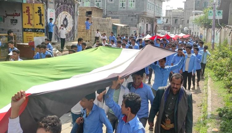 مسيرات طلابية في مديريات ريف إب وجبلة والمخادر نصرة لغزة