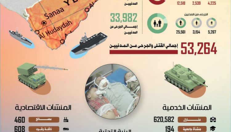 وتوضح هذه الأرقام حجم الدمار الممنهج الذي ألحقه العدوان الأمريكي السعودي باليمن، حيث لم يقتصر على استهداف المدنيين وإنما شمل كل مقومات الحياة من بنى تحتية واقتصاد وزراعة وصحة وتعليم، ما يكشف عن طبيعة الحرب الشاملة التي يشنها التحالف على اليمنيين منذ ما يقارب العشر سنوات.