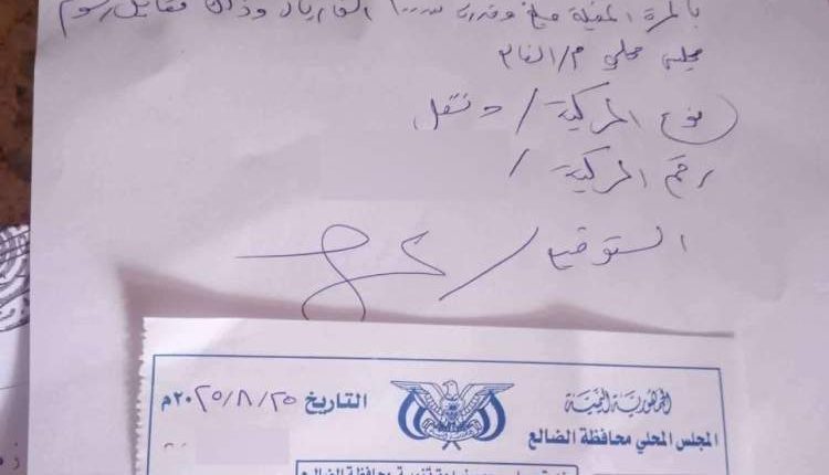 وأكد الناشطون أن سائقي الشاحنات فوجئوا بمطالبات بدفع مبالغ مالية عبر سندات غير رسمية، حيث يجبرهم مرتزقة ما يسمى بالانتقالي المدعوم إماراتياً على دفع 20 ألف ريال نقداً مقابل المرور، مع كتابة التزام خطي بدفع 100 ألف ريال في المرة القادمة.