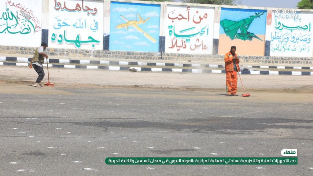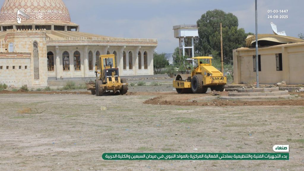 شاهد بالصور.. ميدان السبعين والكلية الحربية بصنعاء يتحضران ليوم المولد الأعظم بتجهيزات ضخمة