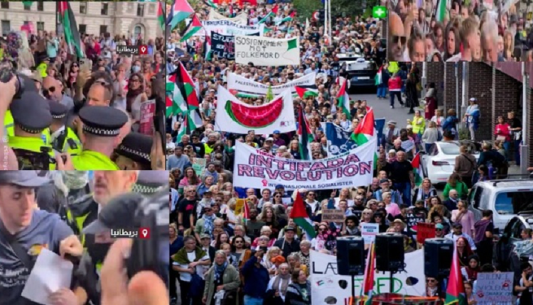 وفي مدينة “مانشستر” البريطانية، تظاهر الآلاف هاتفين: “أرباحُكم ملطّخة بالدماء الفلسطينية”، في إشارة إلى شركات الأسلحة التي تستفيد من الإبادة الجماعية التي يرتكبها الاحتلال على مدى 23 شهرًا في غزة، و77 عامًا من التطهير العِرقي والقتل في فلسطين.