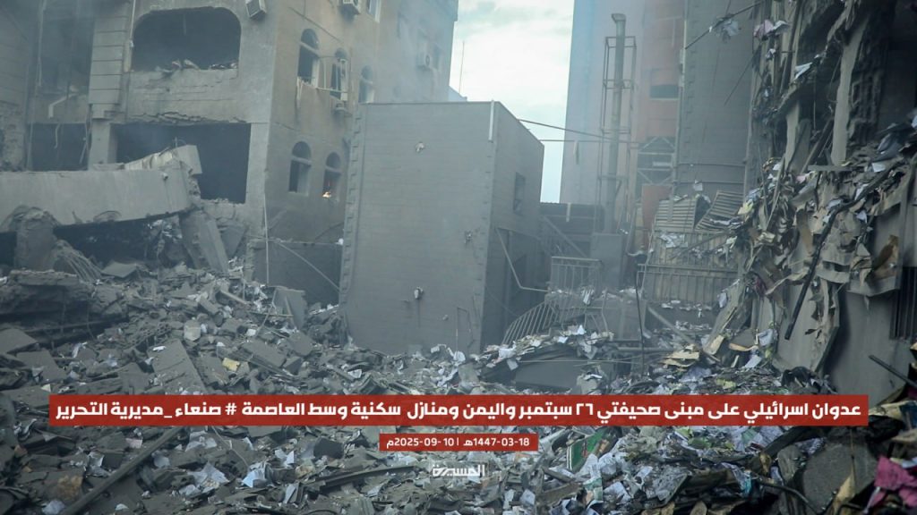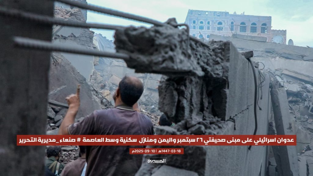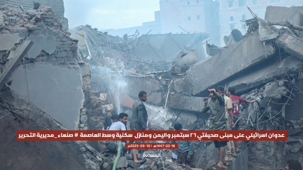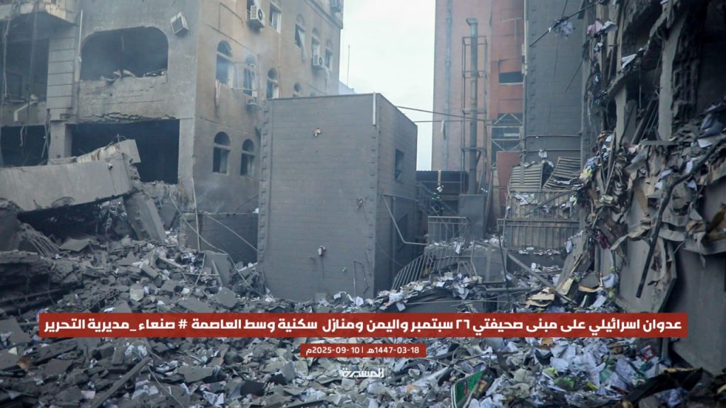 أخبارأخبار محليةاهم الاخبار ألبوم صور لجريمة العدوان الصهيوني على مبنى صحيفتي ٢٦سبتمبر واليمن ومنازل سكنية وسط العاصمة صنعاء صنعاء/ يمانيون/صور ألبوم صور لجريمة العدوان الصهيوني على مبنى صحيفتي ٢٦سبتمبر واليمن ومنازل سكنية وسط العاصمة صنعاء Share