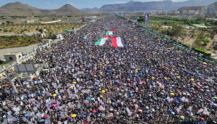 الحشود الجماهيرية المليونية تملأ ميدان السبعين وساحات المحافظات في مسيرات ’’وفاءً للشهداء .. لن نتراجع في إسناد غزة مهما كانت التضحيات’’
