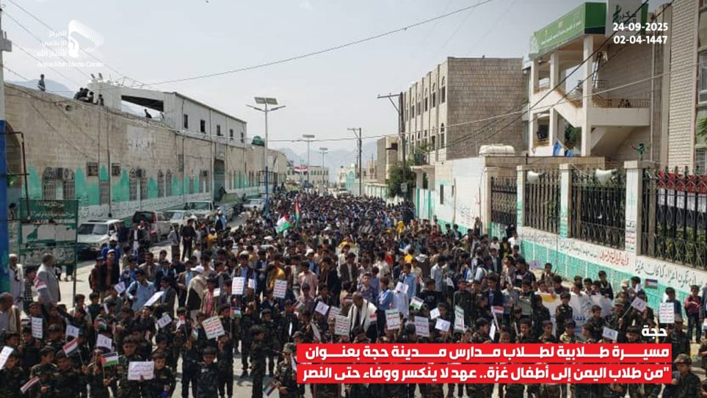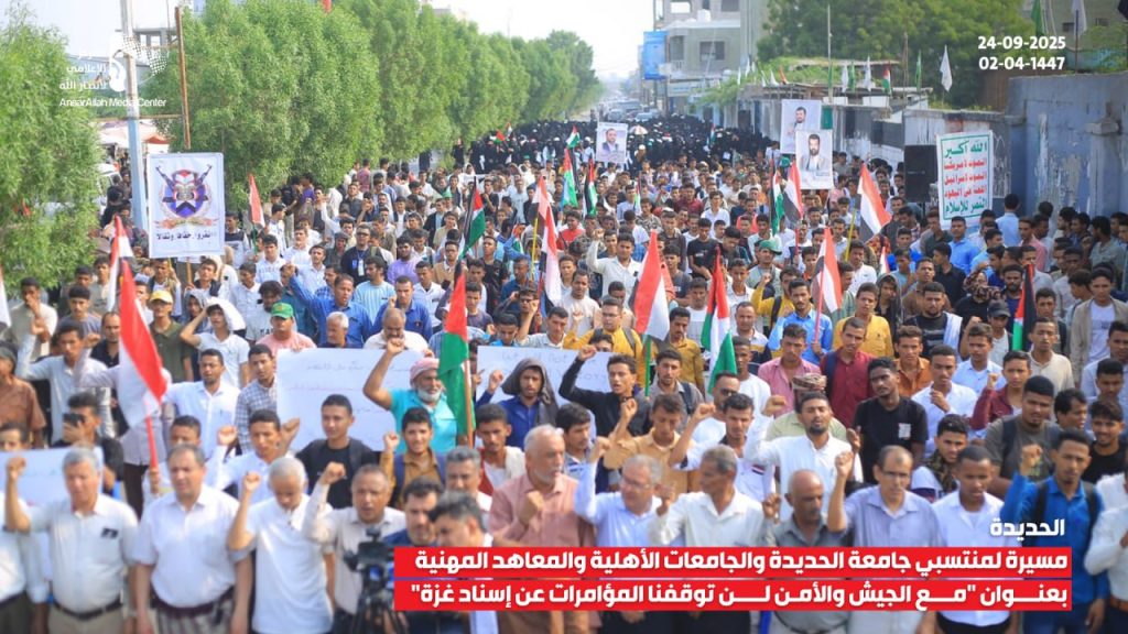 وفي محافظة صعدة، نظّمت جامعة صعدة مسيرة جماهيرية كبيرة تحت شعار “إحياء لثورة 21 سبتمبر… وتأكيداً على ثبات الموقف لنصرة غزة”.