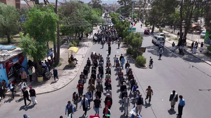 نظمت جامعة صنعاء اليوم عرضاً ومسيراً طلابياً لخريجي الدورة الرابعة من دورات طوفان الأقصى، شارك فيه أكثر من 3,000 طالب من كليات الجامعة، تزامناً مع الذكرى الثانية لانطلاق المعركة، انطلق المسير من ساحة كلية اللغات ووصل إلى ساحة العرض خلف كلية الهندسة، حاملين العلمين اليمني والفلسطيني ومرددين شعارات تندّد بالمجازر المرتكبة في قطاع غزة.