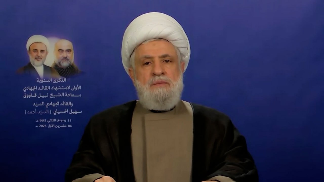 جاء ذلك في كلمةٍ ألقاها الشيخ قاسم مساء السبت، خلال إحياء الذكرى السنوية الأولى لاستشهاد القائدين الجهاديين الشيخ نبيل قاووق وسهيل الحسيني، حيث قدّم قراءة شاملة لمجمل التطورات السياسية والميدانية في المنطقة، رابطًا بين ما تتعرض له غزة اليوم وبين المخططات الأمريكية التي تستهدف محور المقاومة منذ عقود.