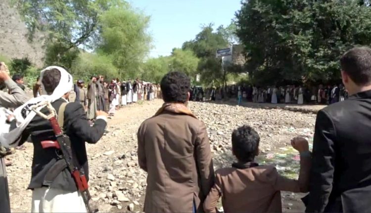 وقفة مسلحة لأبناء الحيمة الداخلية بصنعاء تبارك العمليات ضد كيان الاحتلال