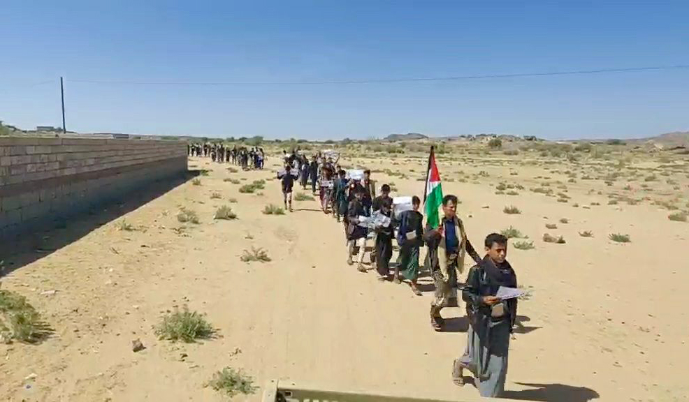 كما شهدت محافظة مأرب مسيرات راجلة في مديريات بدبدة وجبل مراد وماهلية، عبّر فيها المشاركون عن موقفهم الثابت في مواجهة المشروع الصهيوني الأمريكي، مؤكدين أن الشعب اليمني ماضٍ في طريق التحرر ومساندة محور المقاومة حتى يتحقق النصر الكامل لفلسطين.