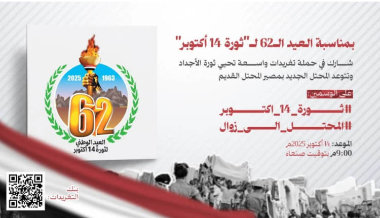 تنطلق في الساعة التاسعة من مساء اليوم، حملة تغريدات واسعة على موقع التواصل الاجتماعي “إكس”، بمناسبة العيد الـ62 لـ “ثورة 14 أكتوبر”.