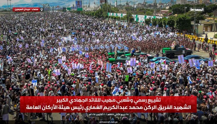 أخبارأخبار محليةصور صور أولية.. صنعاء تودع قائد الإنتصارات ومزلزل “حيفاء” وخانق “إيلات” الفريق الركن الغماري صنعاء|يمانيون|صور صنعاء تودع قائد الإنتصارات ومزلزل "حيفاء" ومحاصر "إيلات" الفريق الركن الغماري "صور أولية" Prev 1 of 19 Next #الغماري_شهيد#مراسم_تشييع_الغماري Share