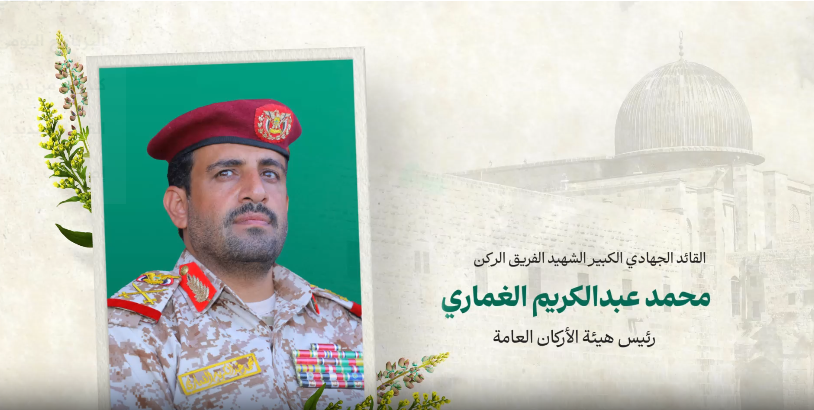 الشهيد الفريق الركن محمد عبدالكريم الغماري ارتقى في ميدان الدفاع عن غزة، ليكتب بدمه وثيقة العهد الأبدي بين اليمن وفلسطين. كان جسده في الميدان، وروحه تحلق في سماء القدس، وعقله يرسم للغد معادلات النصر. فاستشهاده لم يكن نهاية، بل بداية جولةٍ جديدةٍ من الوعي والعزيمة.
