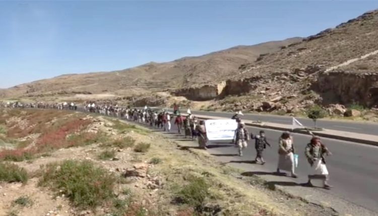 نظمت التعبئة العامة بمديرية بلاد الروس في محافظة صنعاء ، مسيرًا راجلًا لخريجي الدورات العسكرية المفتوحة “طوفان الأقصى” بعزلة العُبَّسْ تحت شعار “وإن عدتم عدنا”.