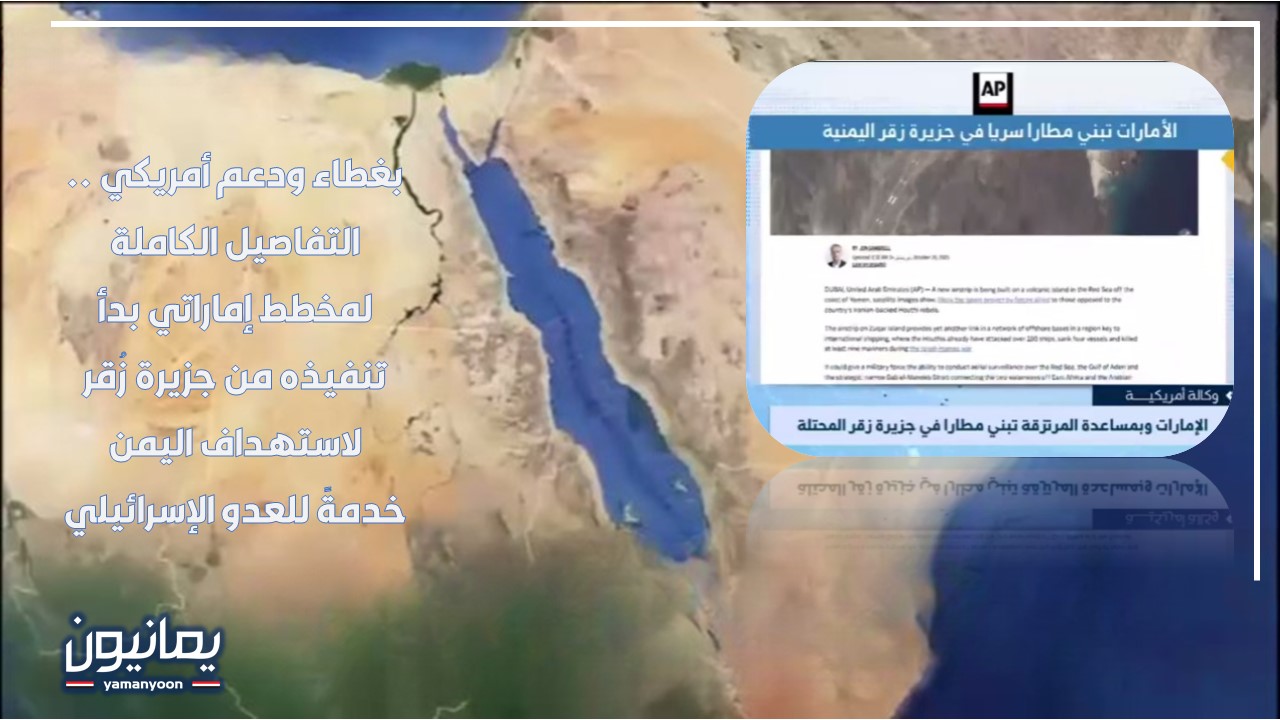 ما يجري في جزيرة زُقر ليس مجرد إنشاء مطار جديد، بل مشروع استراتيجي محفوف بالمخاطر، يضع اليمن في مواجهة مرحلة جديدة من التحدي البحري والعسكري، والتقارير الأمريكية ذاتها تكشف دون أن تصرّح صراحة، أن أبوظبي تتحرك ضمن مشروع أكبر تُرسم خطوطه من واشنطن وتل أبيب، هدفه إخضاع البحر الأحمر لسيطرة مشتركة تمنع أي قوة عربية خصوصًا اليمن، من استخدامه كورقة ضغط أو دفاع عن القضايا العربية وفي مقدمتها فلسطين.