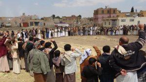في محافظة البيضاء، أضاف المشاركون في وقفاتهم هتافات “الاستنكار للموقف العربي المخزي والإسلامي المنكسر المتهاون”، مؤكدين مباركتهم “الصمود والثبات الأسطوري للمجاهدين في قطاع غزة.